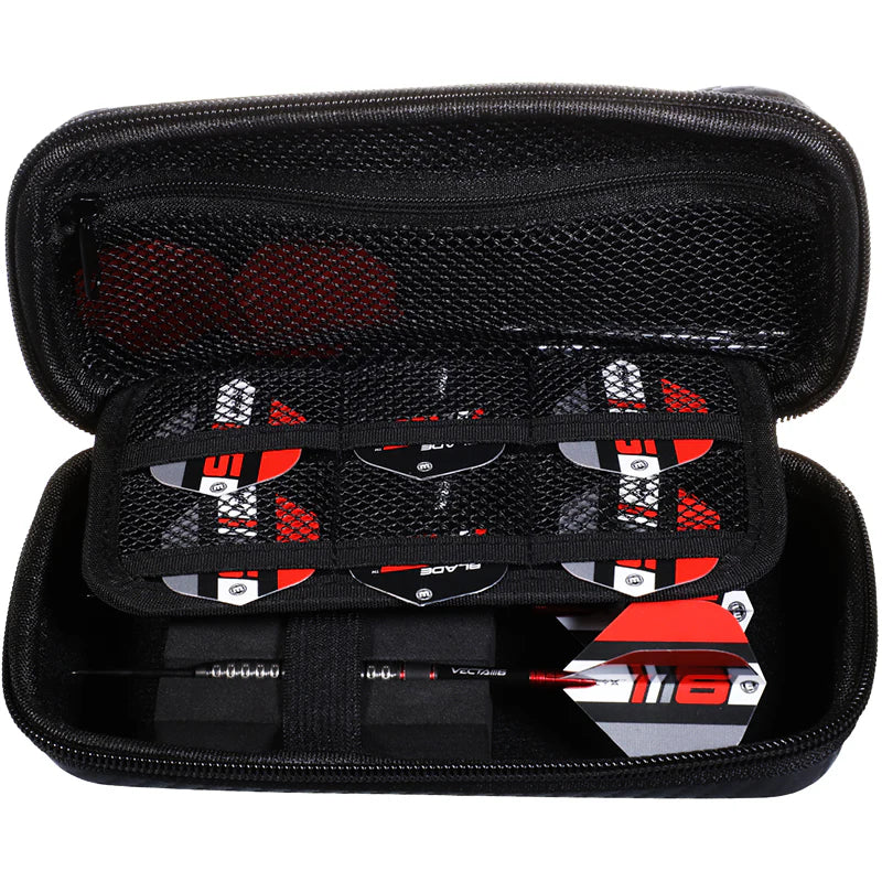Stylish Blade 6 branded dart case, Premium dart case with outstanding build quality, Holds x1 set of fully assembled darts with 10 compartments.
